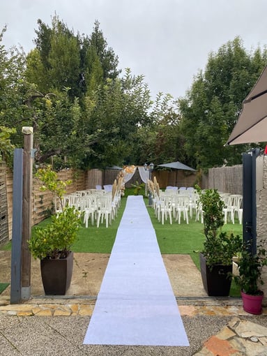 Cet espace peut être décoré selon vos envies, avec des guirlande lumineuse, des lustres balinais, une arche fleuries...
